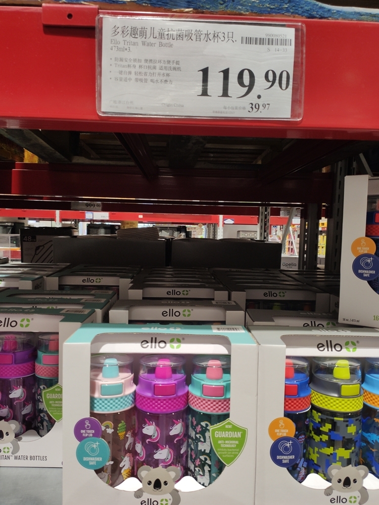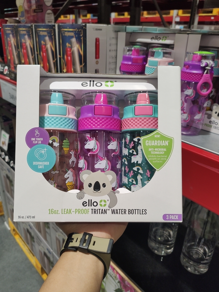 上海Costco开市客代购Ello多彩趣萌儿童抗菌吸管水杯414ml*3(颜色随机)