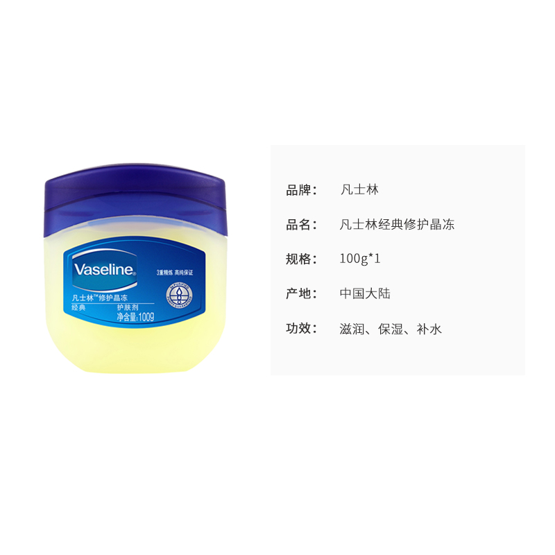 凡士林(Vaseline)经典 修护晶冻100g 保湿润肤霜/手霜 (新老包装随机发货)