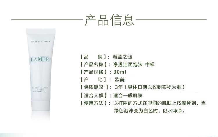 Lamer 海蓝之谜 小样净透 洁面泡沫 30ml 洗面奶中样