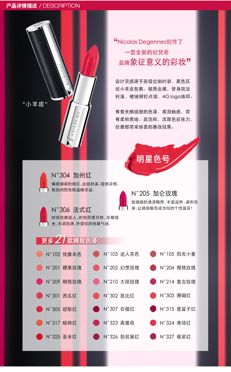 包装方式:包装 品牌:GIVENCHY/纪梵希 包装单位:支 原产地:法国