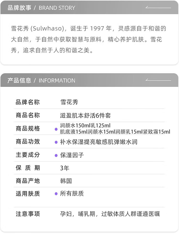 【海南不包邮】【中文标】韩国雪花秀滋盈肌本护肤礼盒六件套
