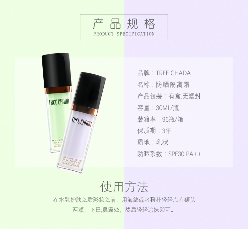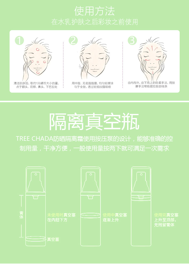 泰国Treechada防晒隔离霜(绿色)SPF30 PA++30Ml/瓶