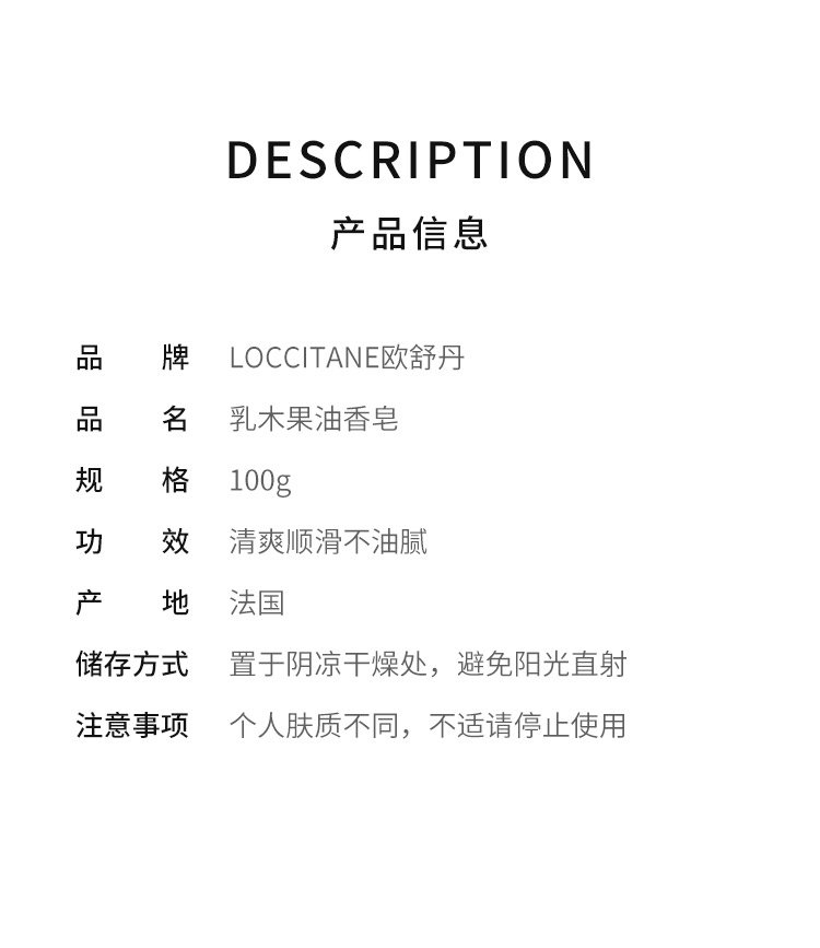 包装方式:包装 品牌:L'OCCITANE/欧舒丹 包装单位:件 原产地:法国