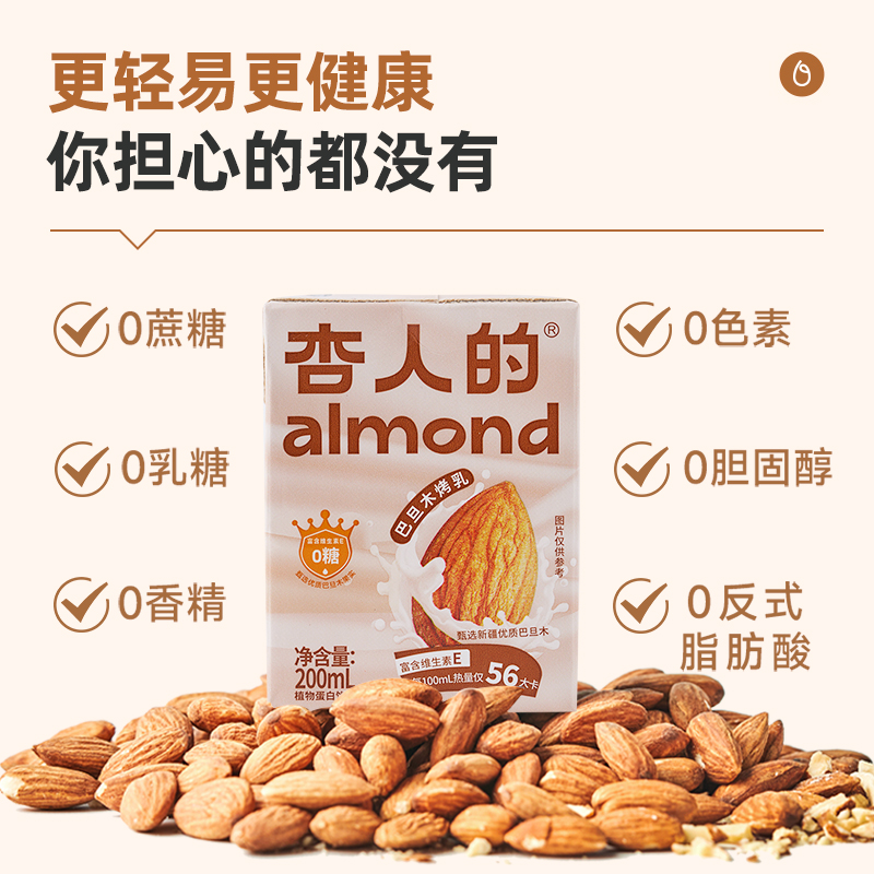 杏人的0糖巴旦木烤乳200ml*12盒 礼盒版