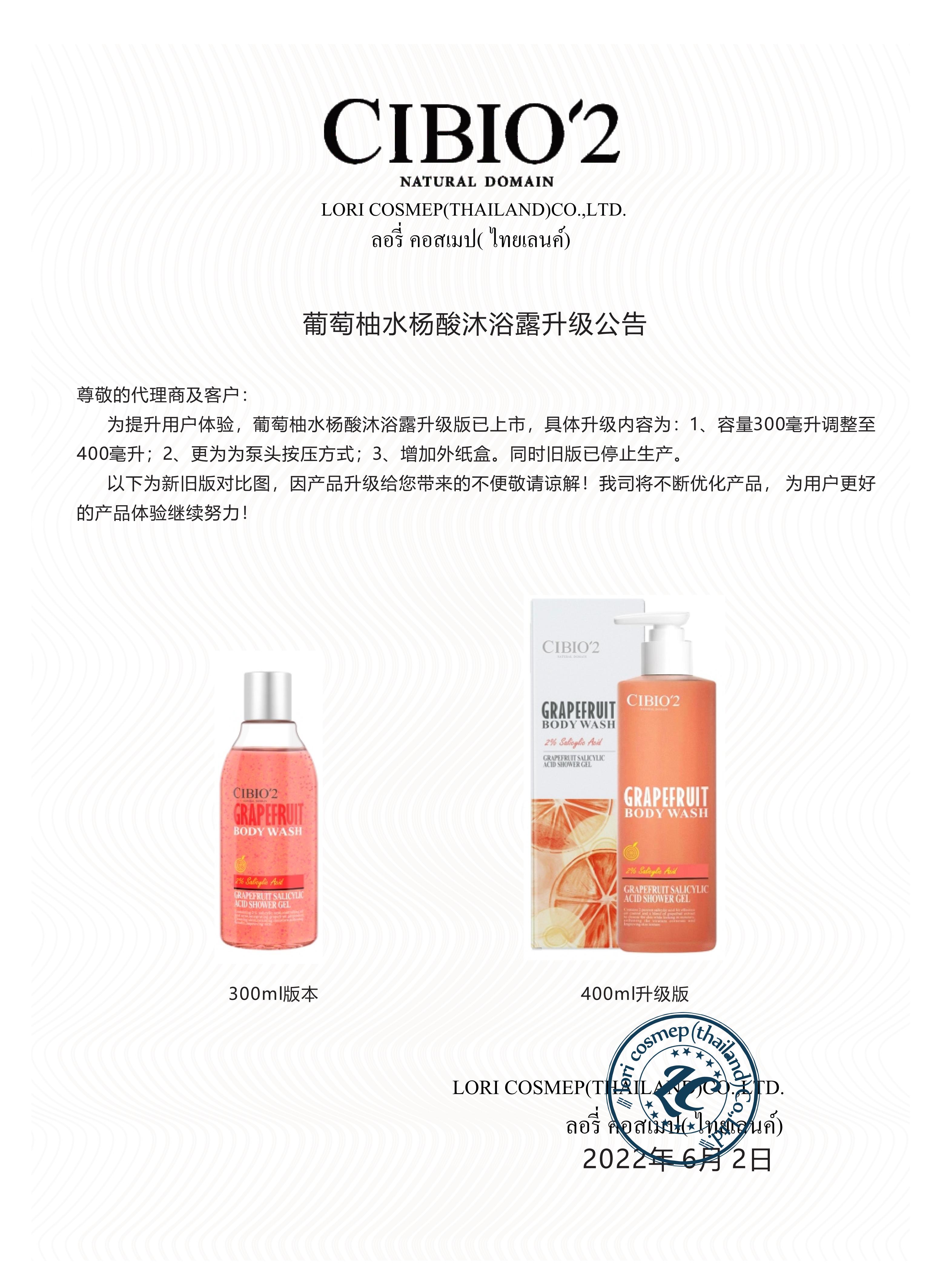 泰国CIBIO'2希蓓欧葡萄柚水杨酸沐浴露(发新款400ml)