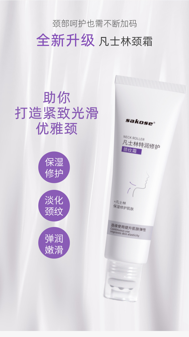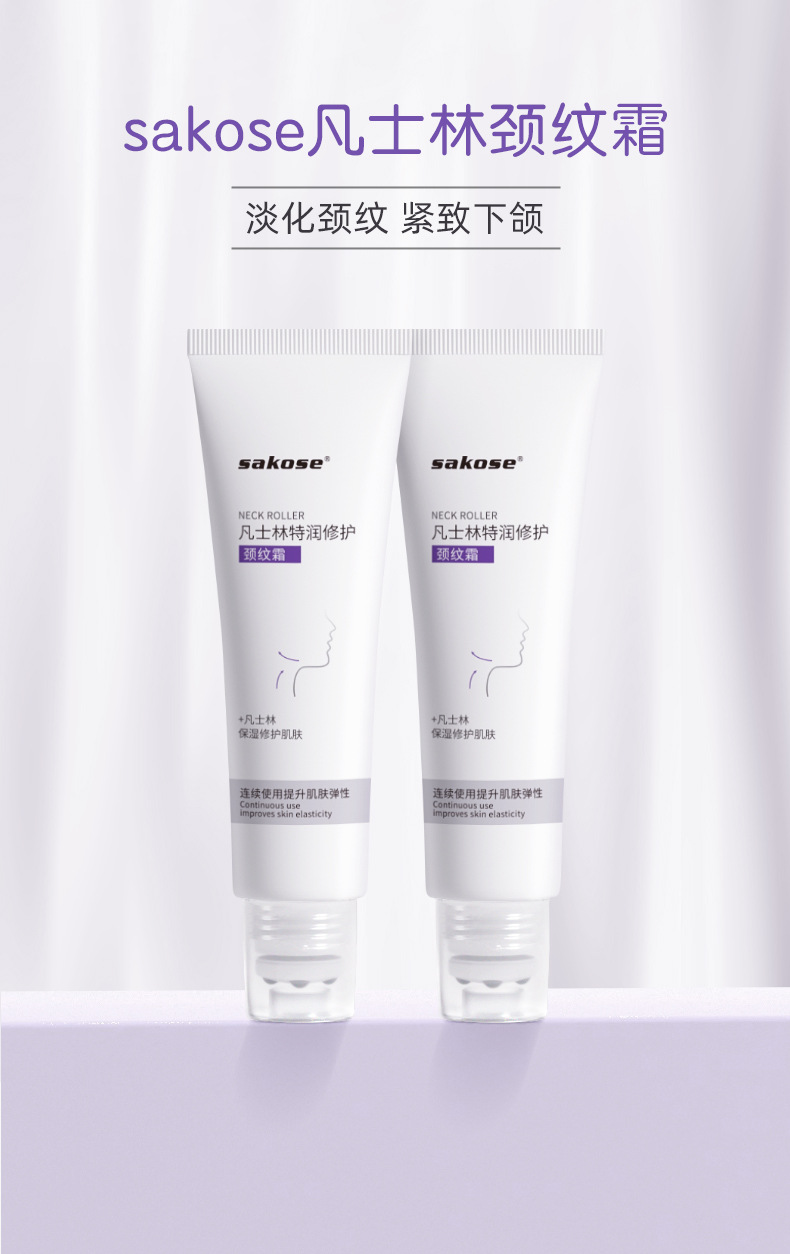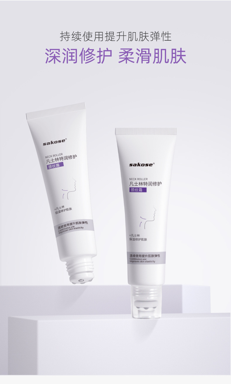 sakose凡士林颈霜滚轮按摩提拉紧致颈部肌肤保湿补水颈部精华护理颈纹霜淡化紧致护理50g
