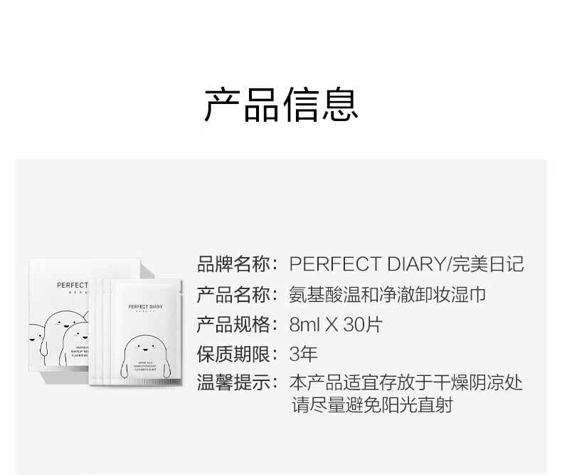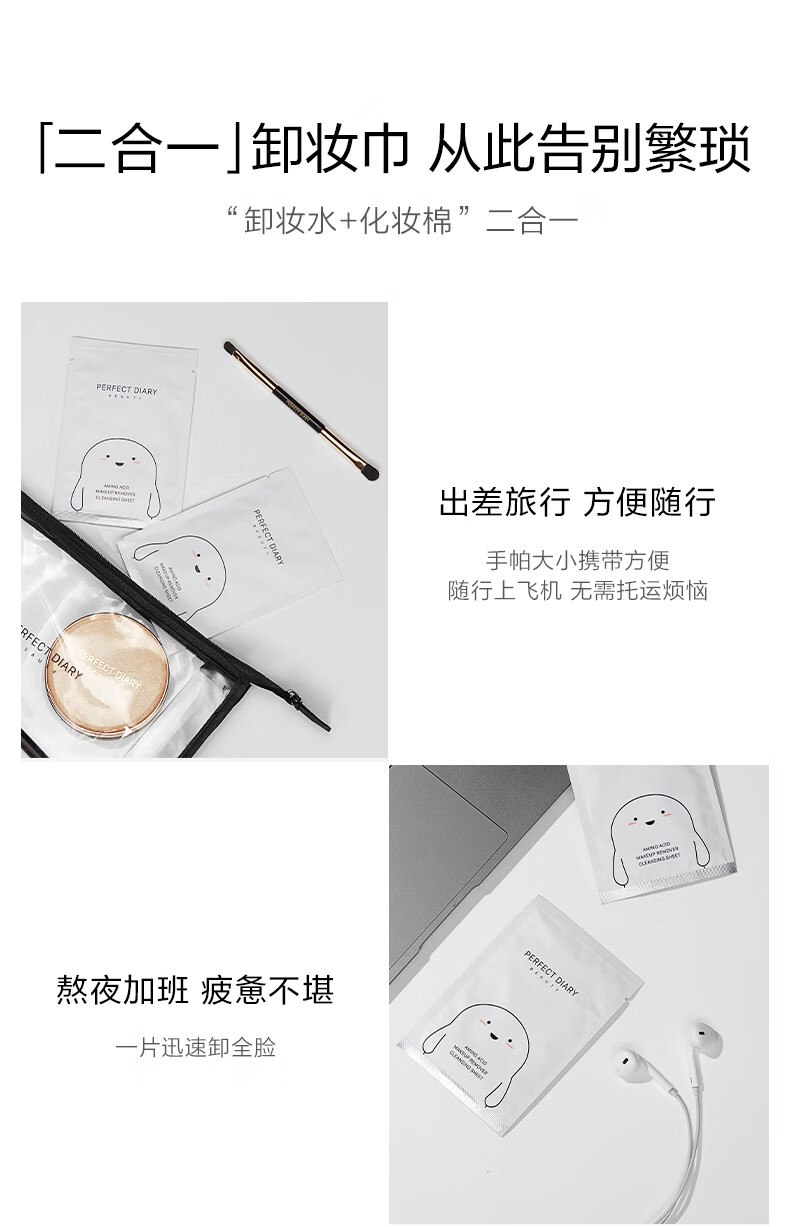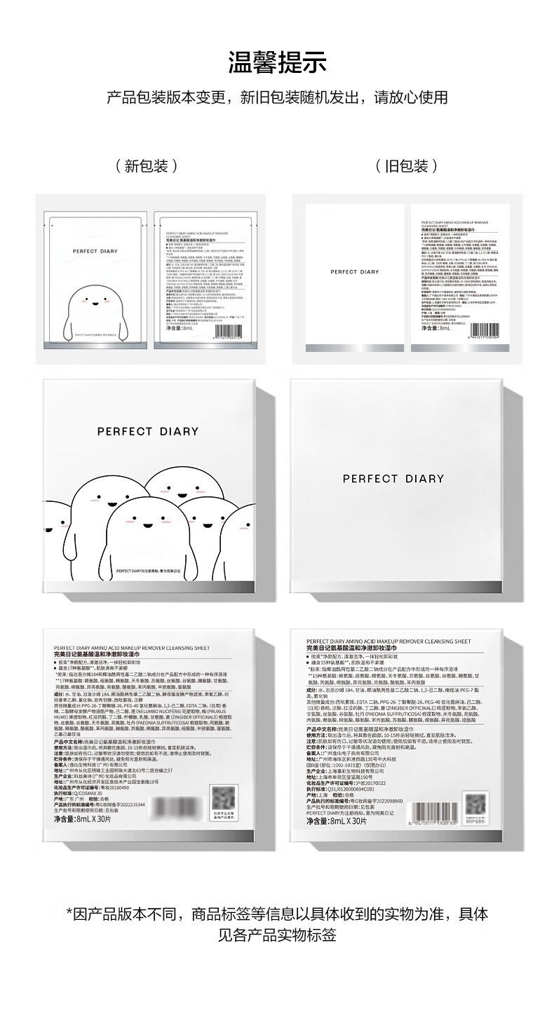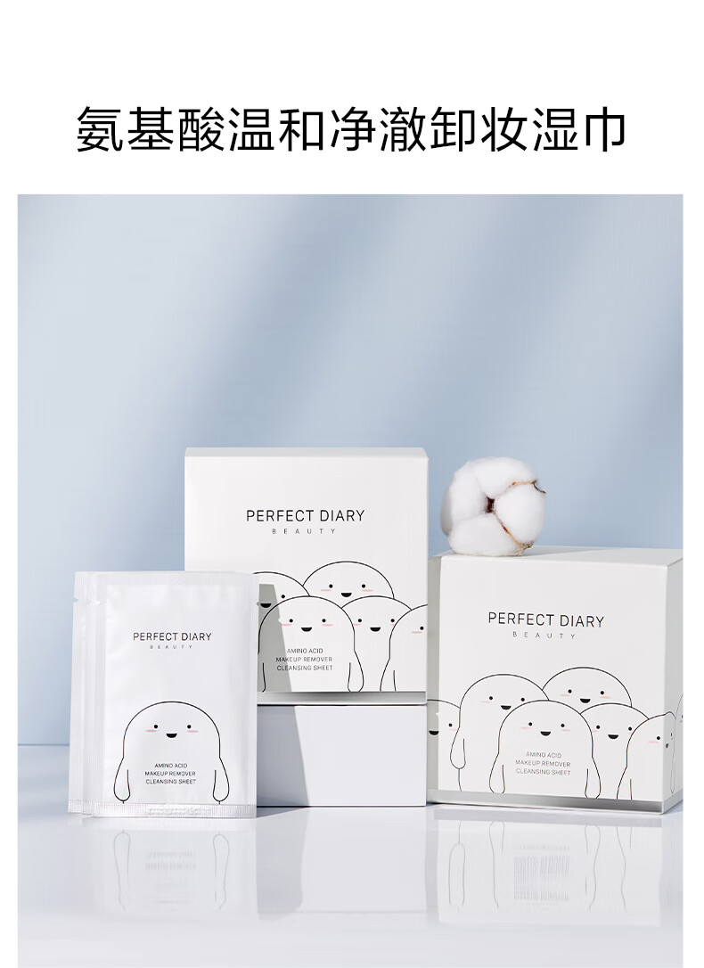 完美日记氨基酸温和净澈卸妆湿巾8ml*30不紧绷生日礼物送女友老婆