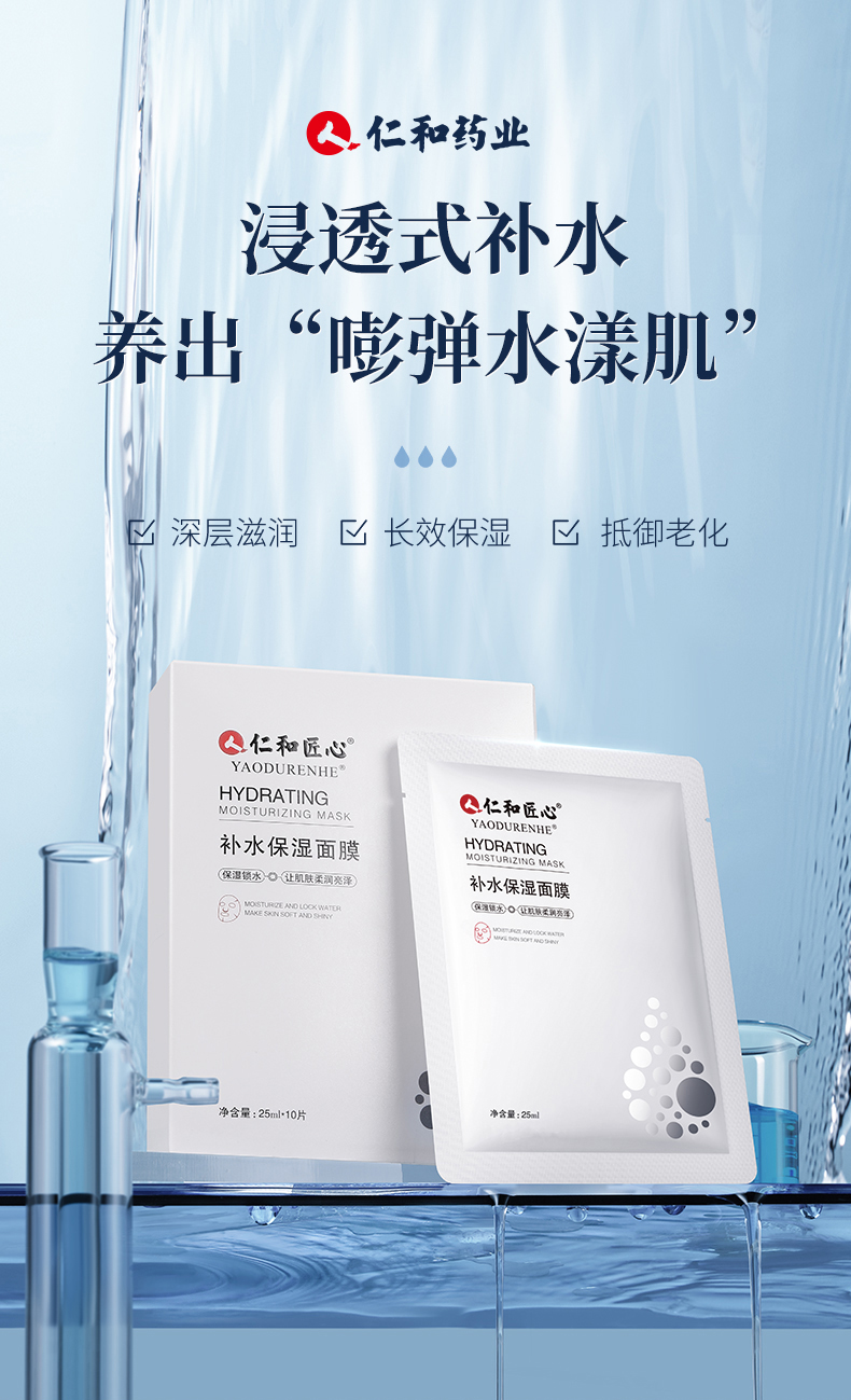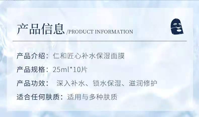 【特价】仁和药业补水保湿紧致收缩毛孔面膜6D玻尿酸深层清洁修护 10片