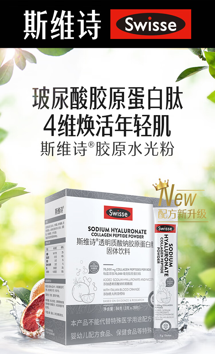 Swisse/斯维诗 透明质酸钠胶原蛋白肽固体饮料84克(28条)