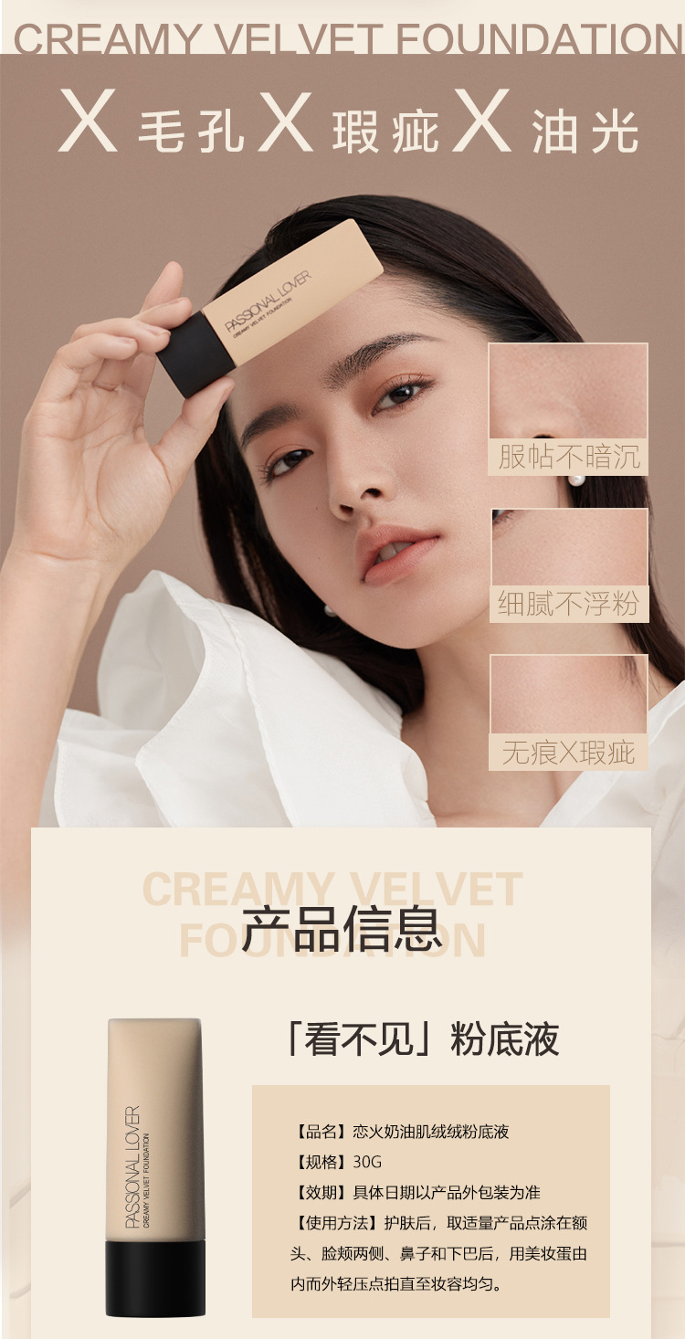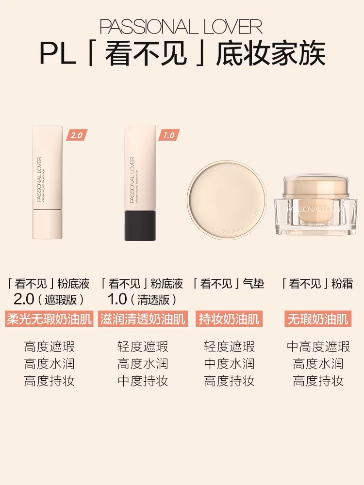 Passional Lover/PL看不见粉底液养肤粉霜干皮奶油肌底妆 02自然色30g【1.0和2.0随机发货】