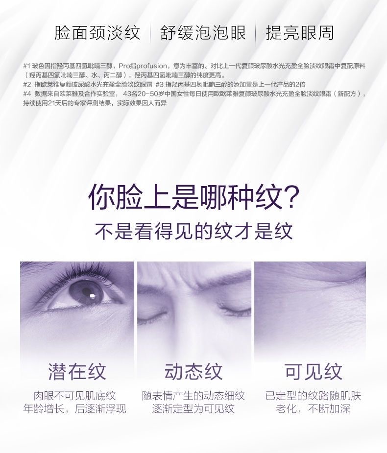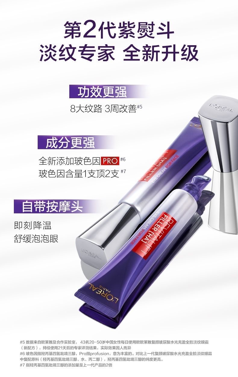 香港直邮【香港直邮】L'Oreal Paris|欧莱雅紫熨斗眼霜复颜玻尿酸水光充盈全脸淡纹玻色因紧致 7.5ml