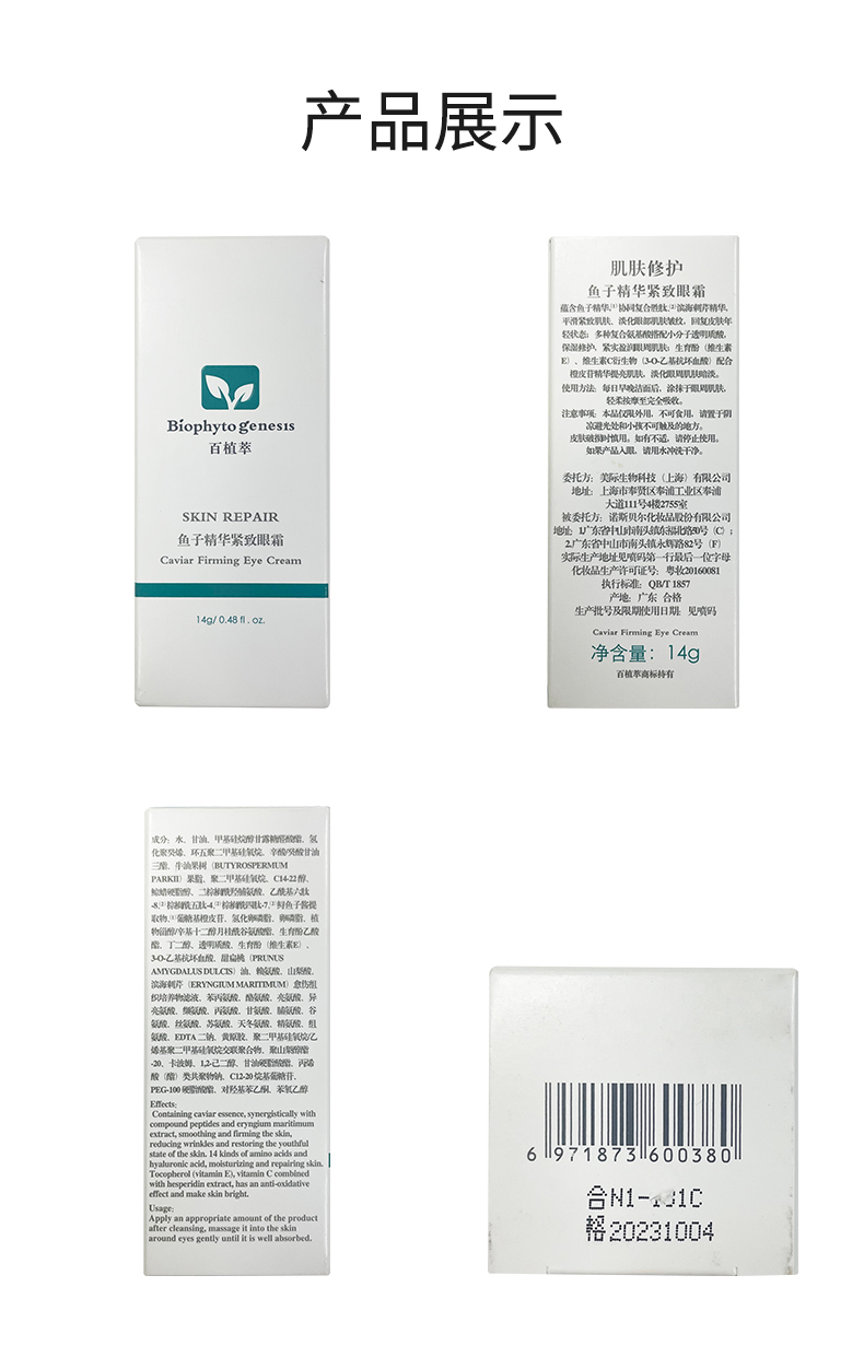 百植萃鱼子精华眼霜14g 维生素VCE补水保湿紧致平滑熊猫眼绽亮双眸