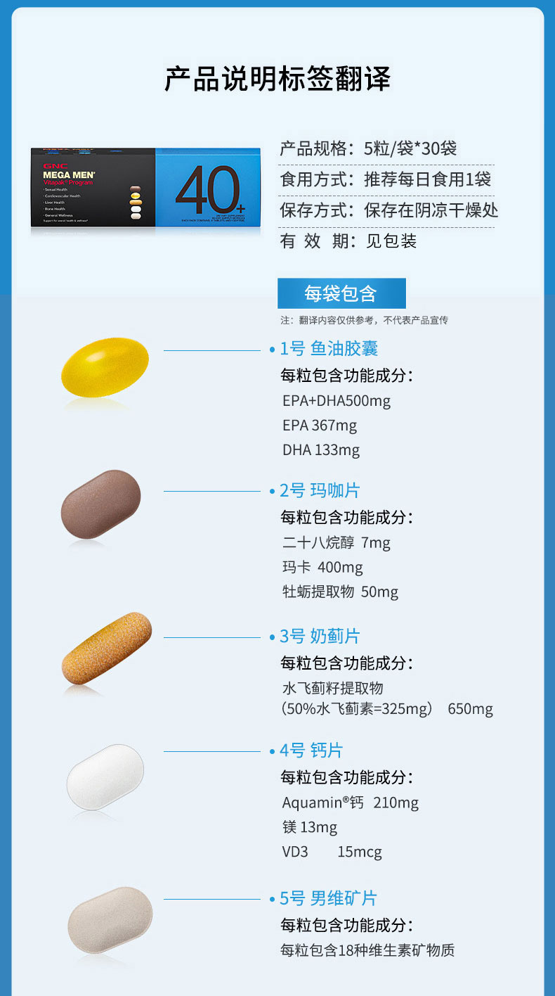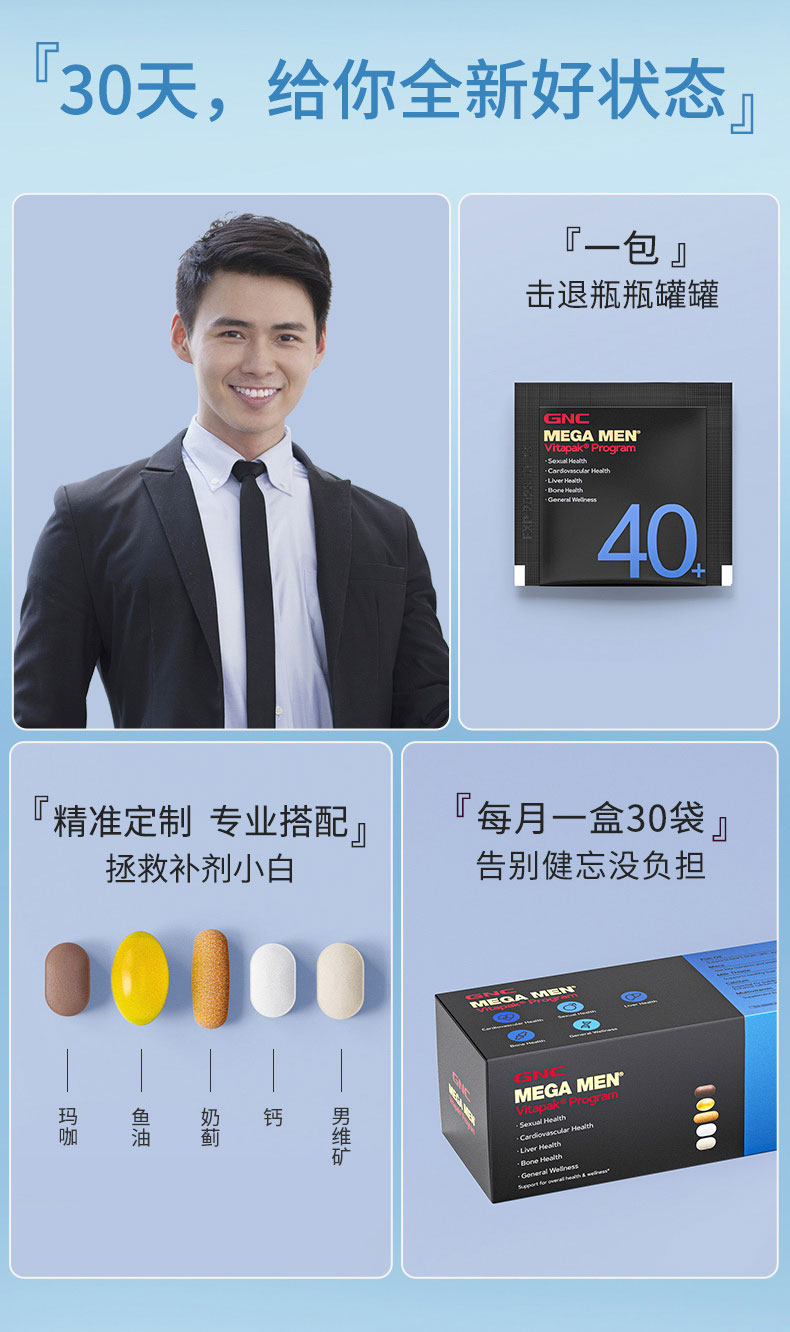 保税直供【保税直供】GNC健安喜Vitapak:registered:男性40+每日维生素营养包