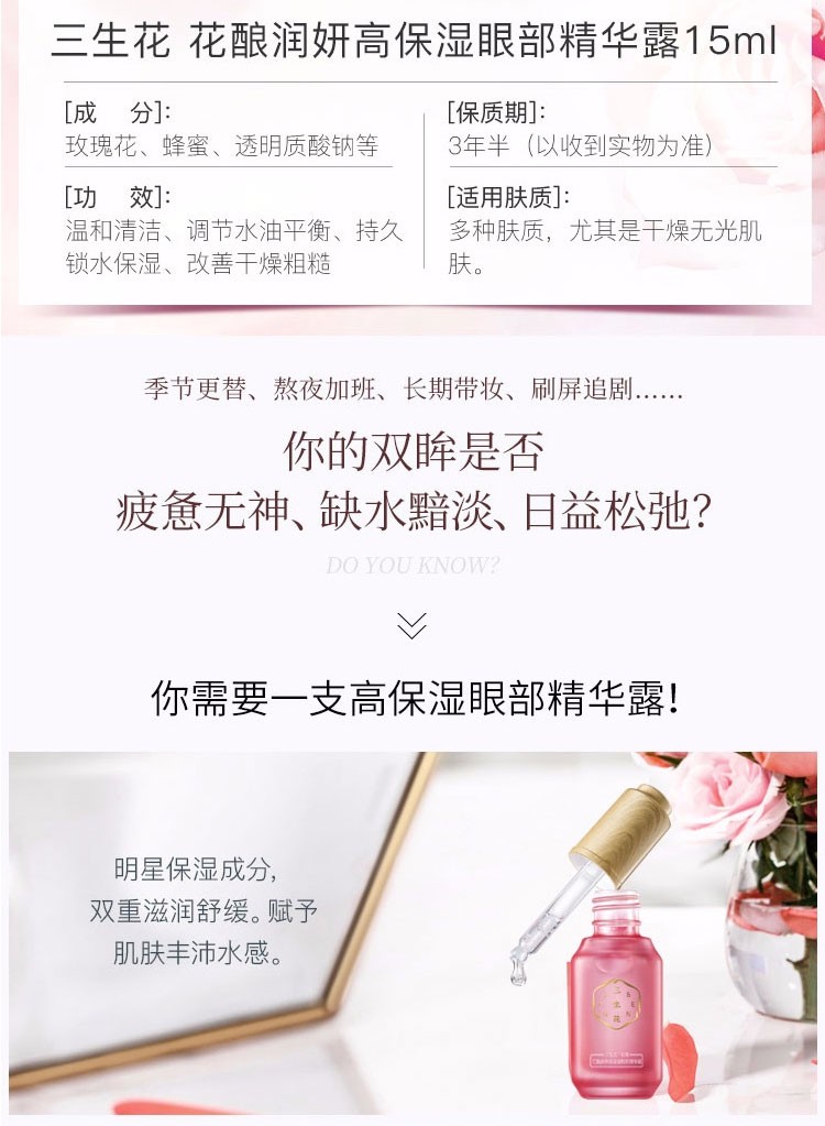百雀羚三生花玫瑰花酿润妍高保湿眼部精华露15ml