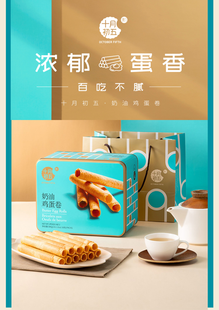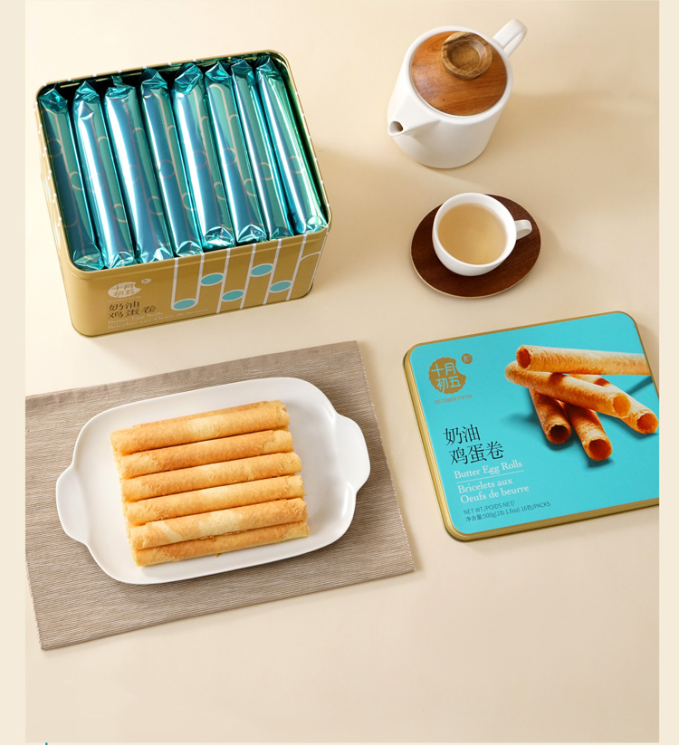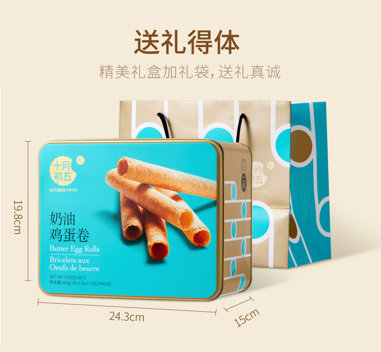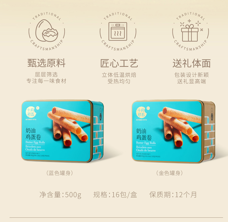 十月初五500g奶油鸡蛋卷(铁罐)下午茶点心送礼糕点礼盒(蓝色/金色随机发货)