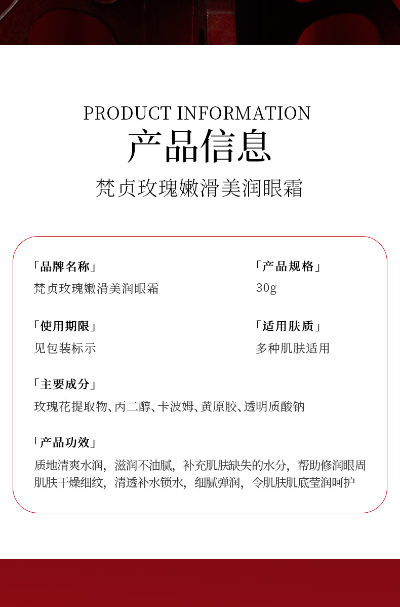 梵贞玫瑰嫩滑美润眼霜30g 补水保湿滋润提靓眼周 眼部护理护肤品黑眼圈黑眼圈眼霜套盒