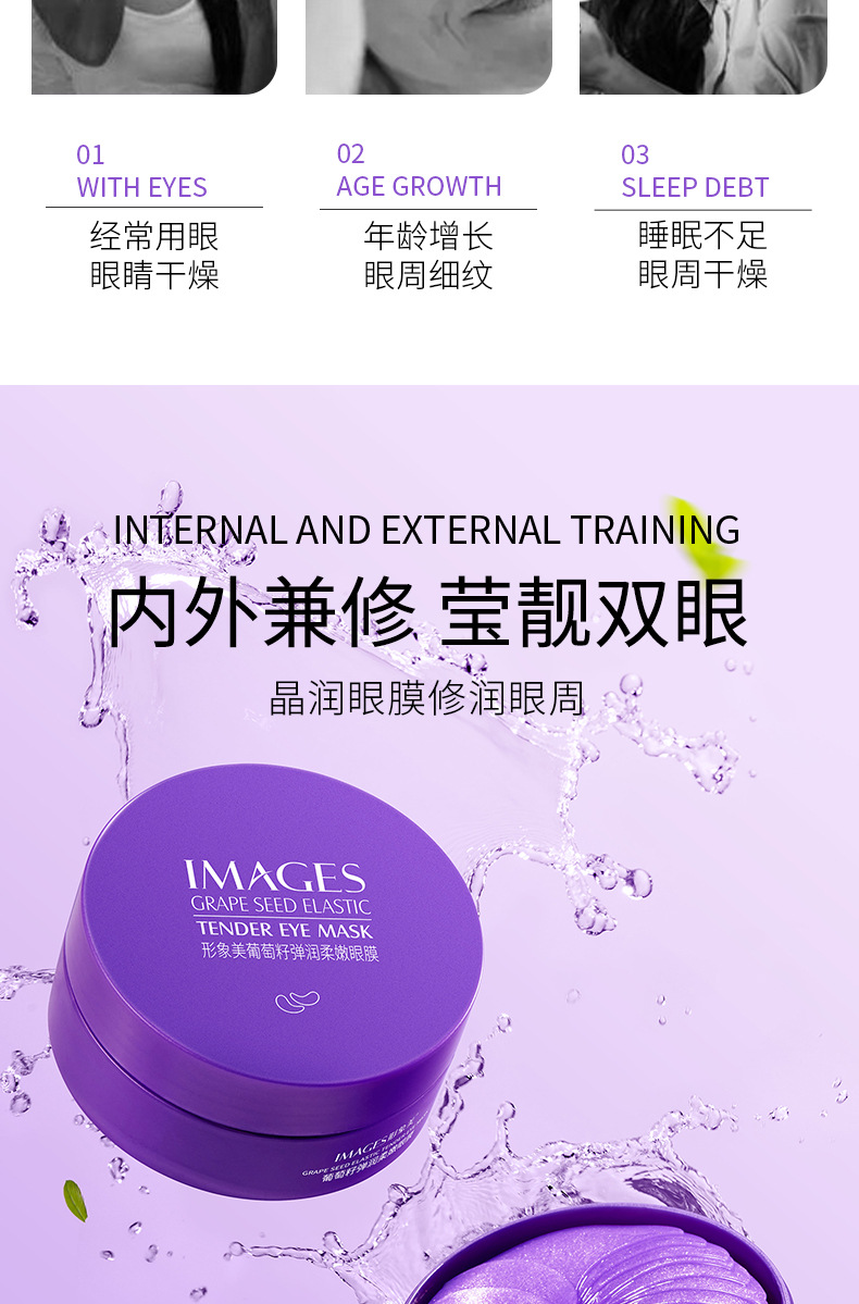 形象美葡萄籽弹润柔嫩眼膜60贴/30对补水保湿滋润提靓眼周眼部护理眼贴眼膜蛇毒黑眼圈眼贴舒适