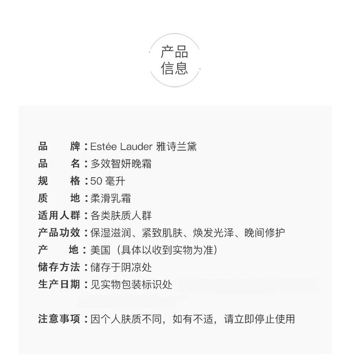 香港直邮【香港直邮】雅诗兰黛 多效智妍晚霜 50ml