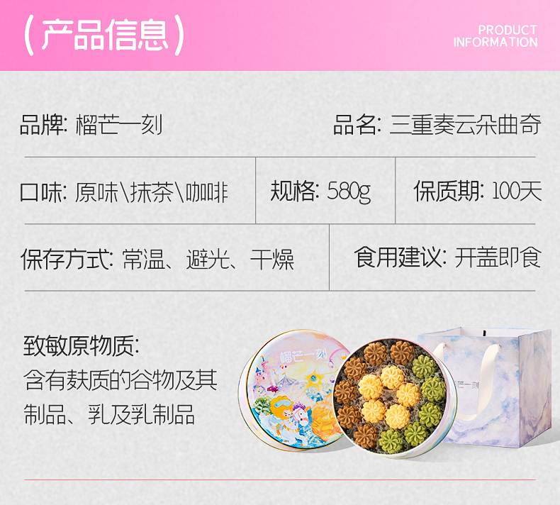 - 三味(原味/咖啡/抹茶)曲奇饼干580g