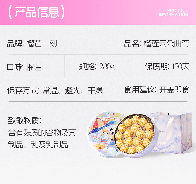 - 榴莲云朵曲奇饼干单层280g/盒(配礼袋)