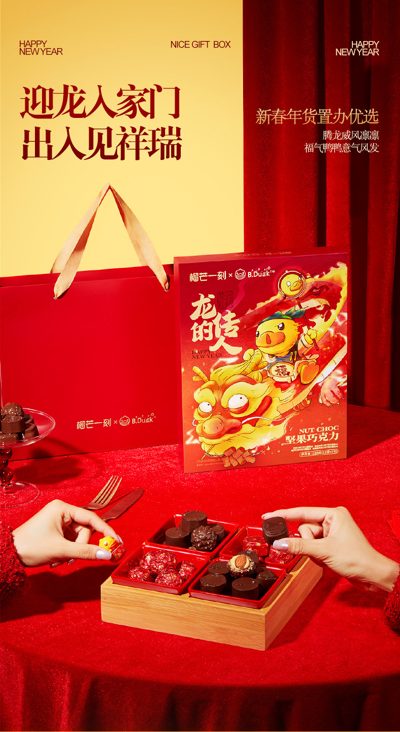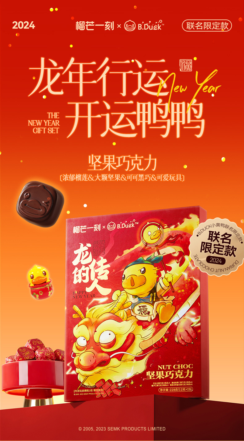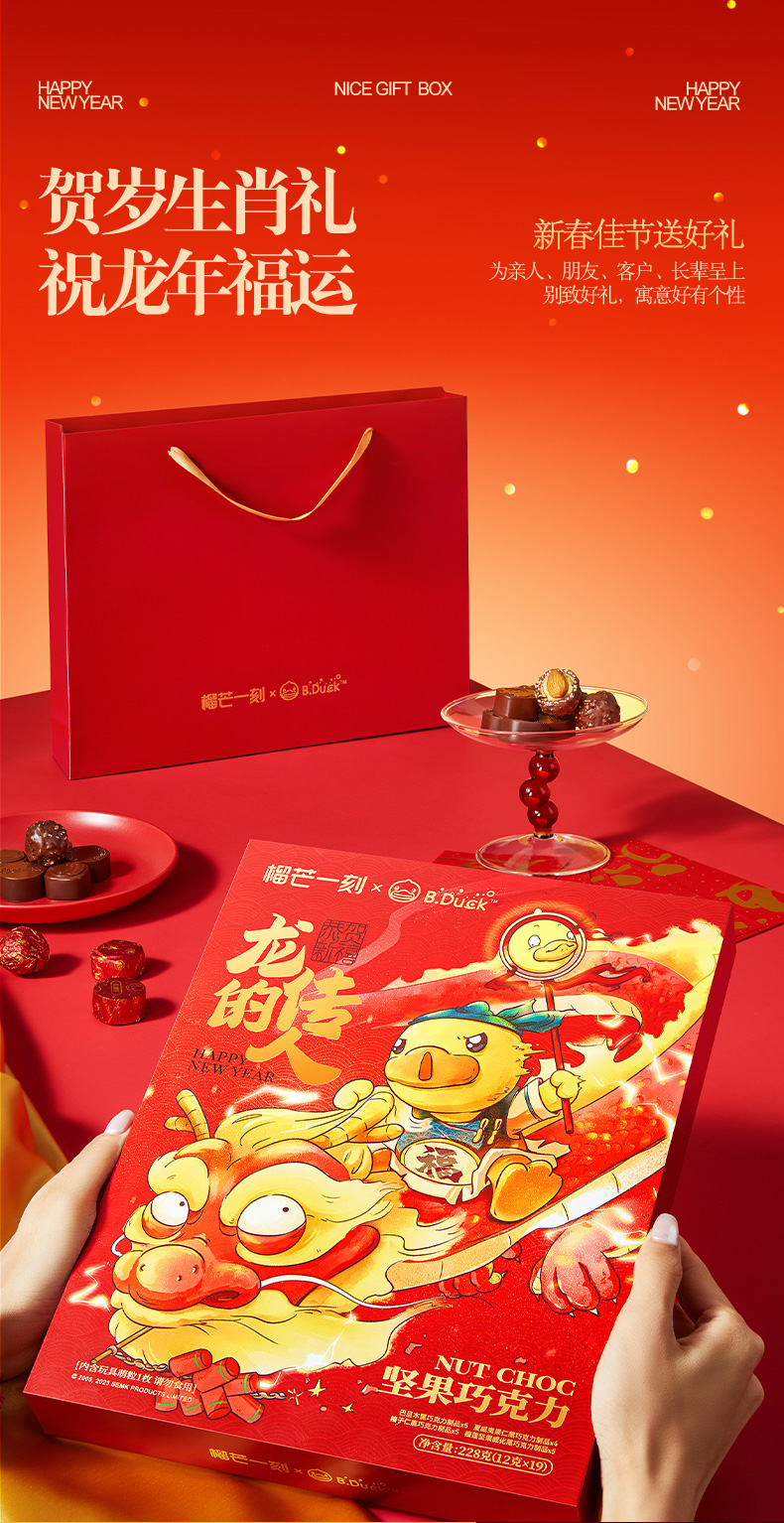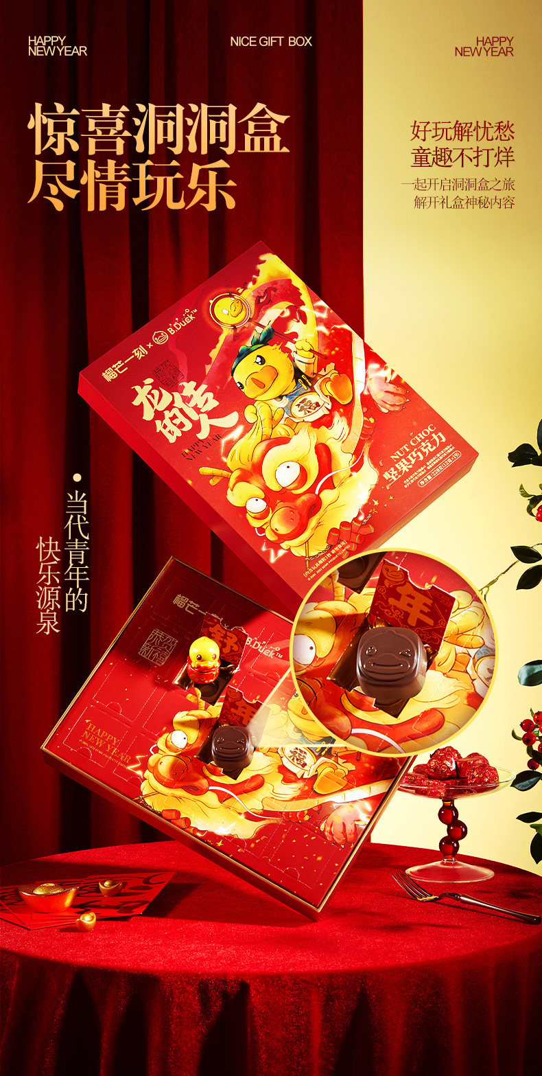 【小黄鸭款19枚+暴富款19枚(赠2个公仔和2个礼袋)】榴芒一刻 混合坚果巧克力年货礼盒2盒装 赠玩具公仔 送礼送女友 糕点盲盒