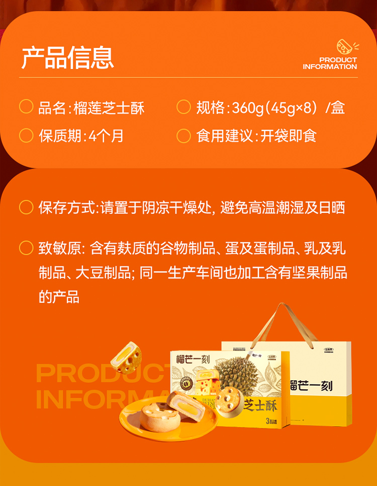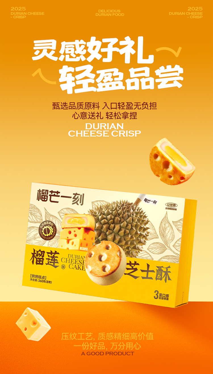 榴芒一刻榴莲芝士蛋黄酥饼礼盒年货糕点伴手礼盒早餐饼中西式点心零食小面包麻薯味多规格