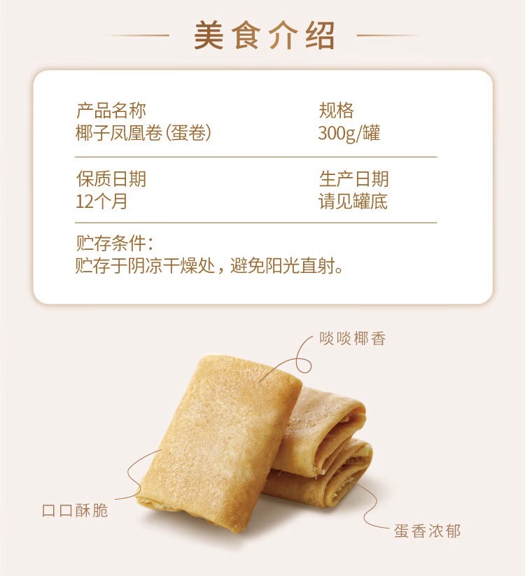 澳门十月初五-椰子凤凰卷(蛋卷)300g(小方罐)