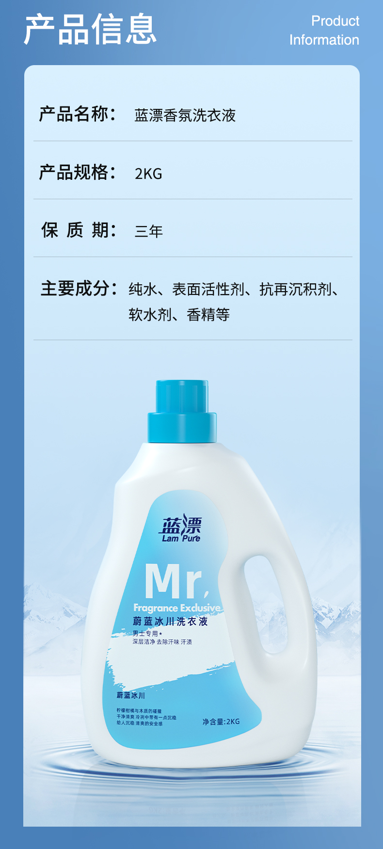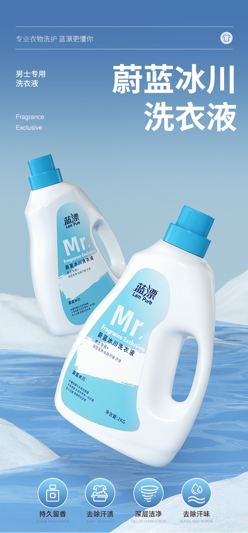 蓝漂男士专用洗衣液2kg/瓶