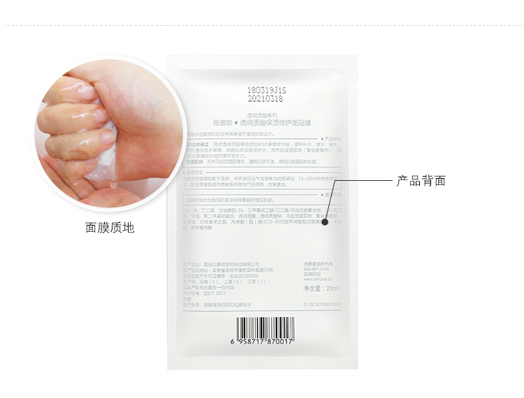 薇诺娜透明质酸保湿修护面贴膜6片 补水滋润修护 正品 敏感肌护肤