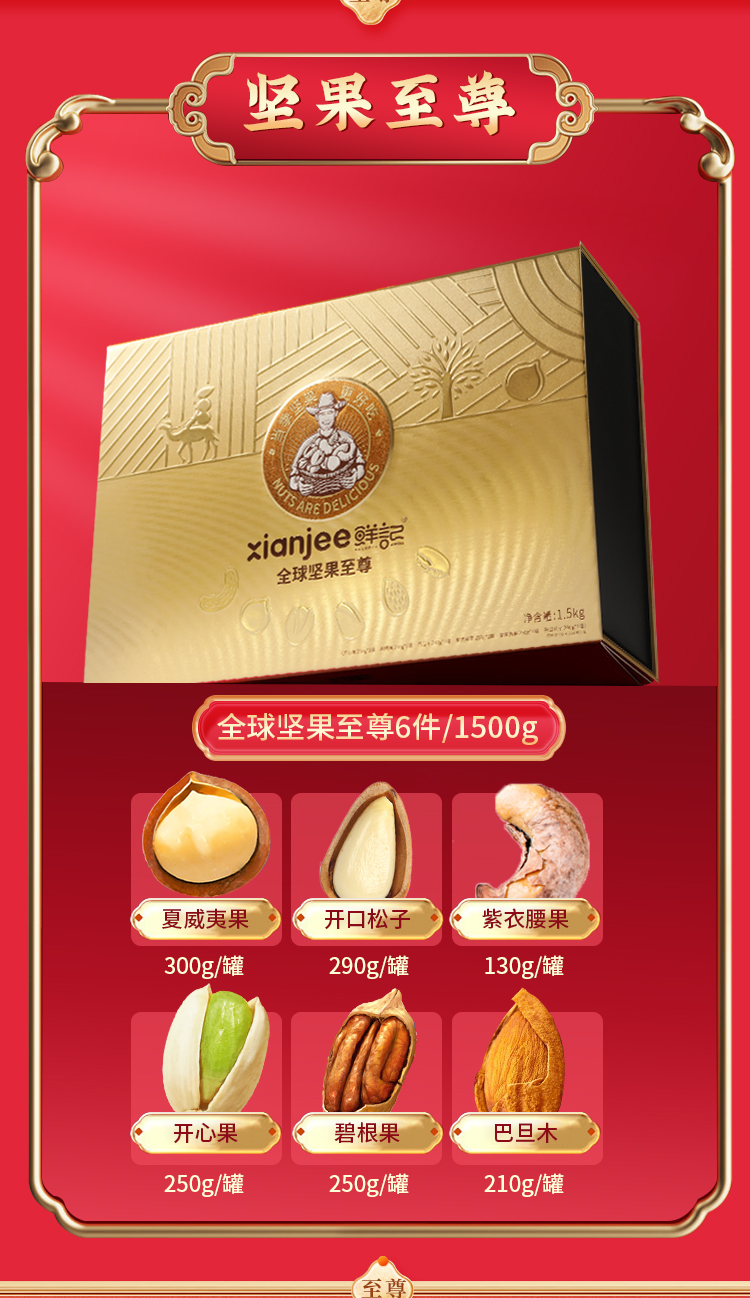 鲜记全球至尊坚果零食礼盒 1.5kg