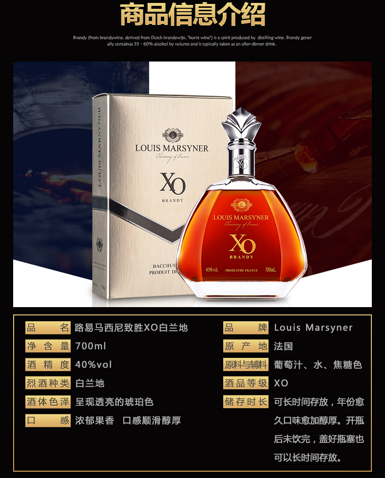 【授权商品】路易马西尼致胜XO白兰地700ml洋酒烈酒鸡尾酒调酒