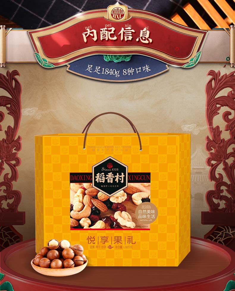 稻香村DXC北京特产稻香村 悦享果礼1840g坚果礼盒春节大礼包休闲零食团购年货零食松子