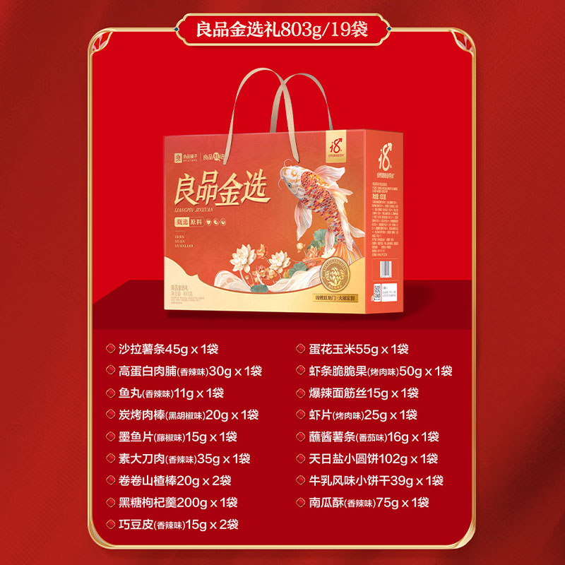 良品铺子 金选礼803g坚果礼盒办公室休闲零食大礼包