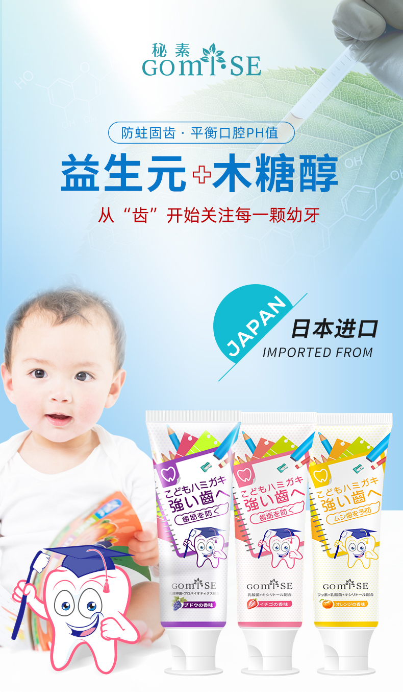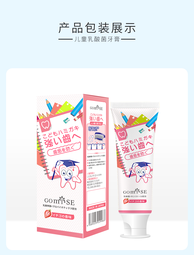日本GOMISE秘素乳酸菌益生元儿童牙膏70g/支(草莓味 )