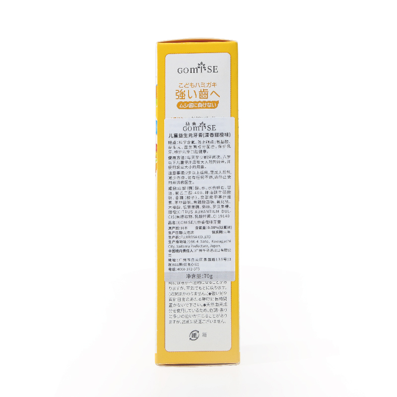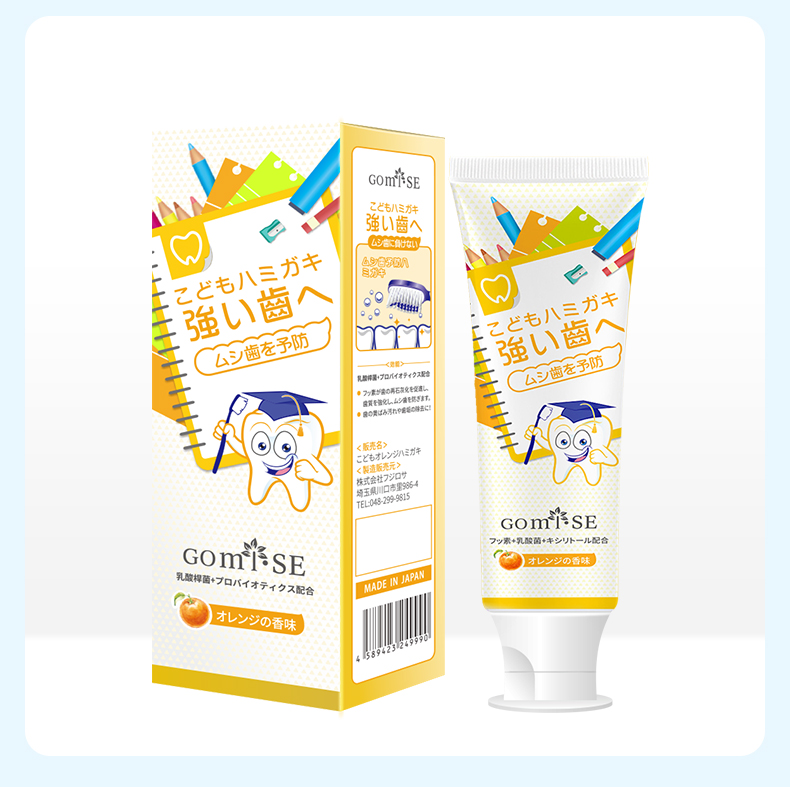 日本GOMISE秘素乳酸菌益生元儿童牙膏70g/支(香橙味)