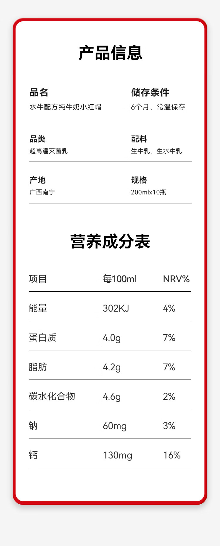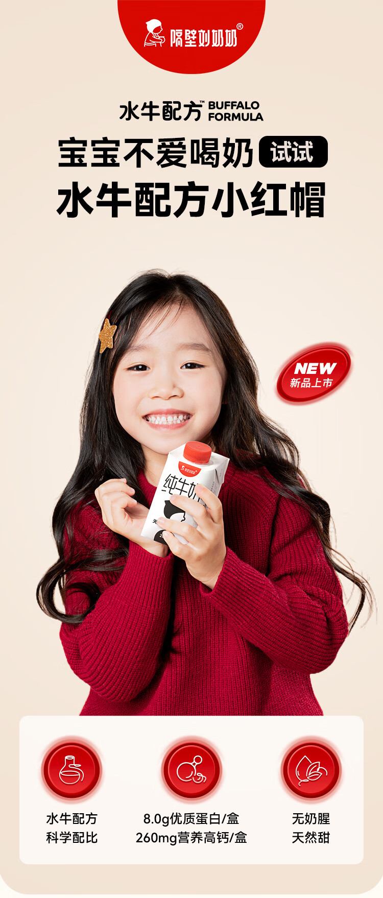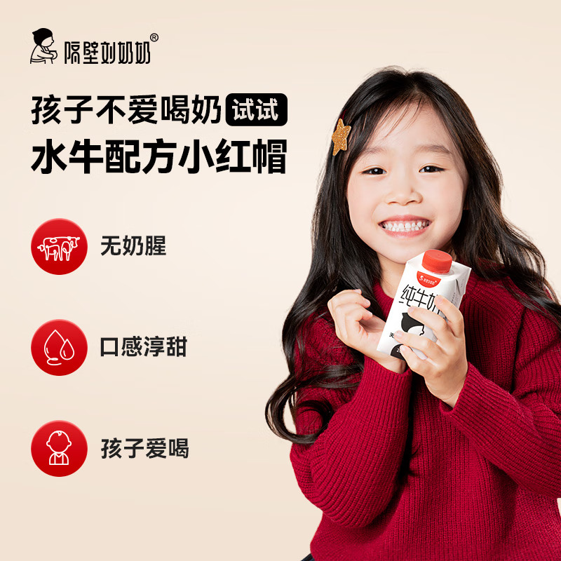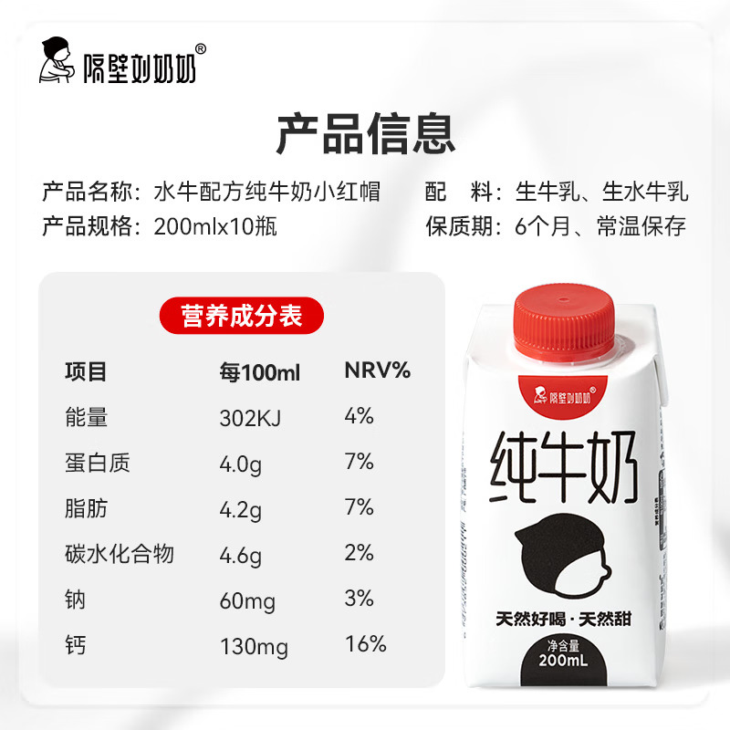 隔壁刘奶奶水牛配方纯牛奶小红帽200ml*10盒儿童牛奶4.0g蛋白高钙奶 送礼