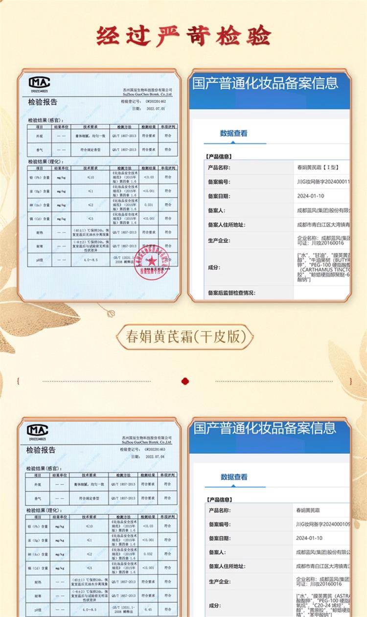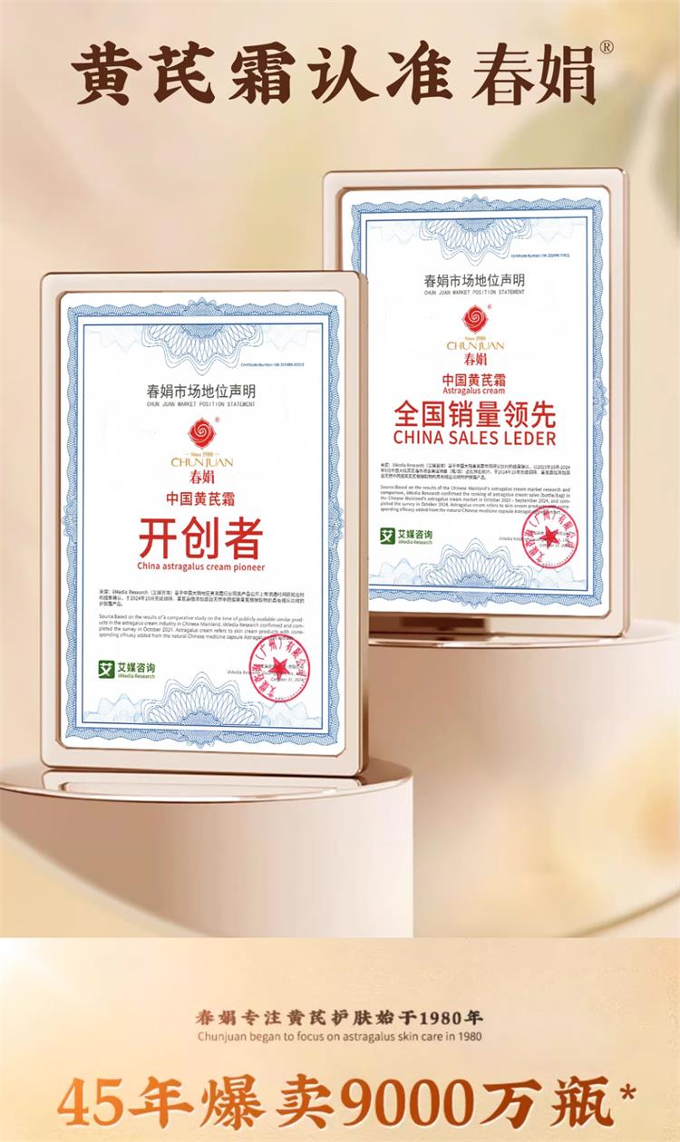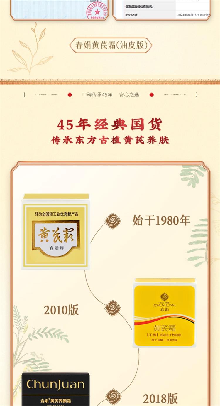 春娟 黄芪霜 1型干皮滋润版30g/2型 油皮混油清爽版30g