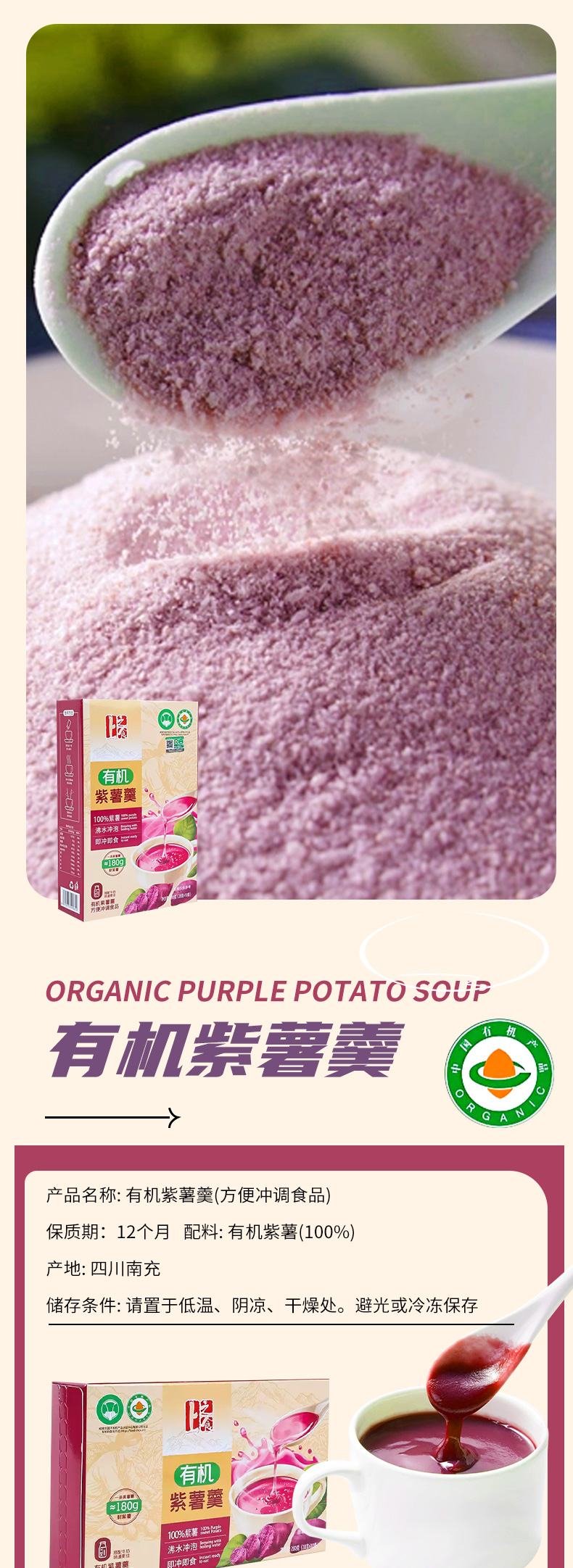 上之食【有机紫薯羹】280g 即冲即食早餐糊无添加轻代餐粉粗粮粥流食