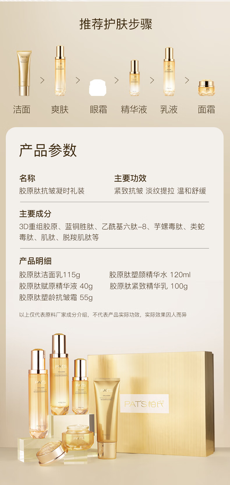胶原肽系列-柏氏胶原肽抗皱凝时礼装(洁面115g+水120ml+乳100g+精华液40g+霜55g)1套