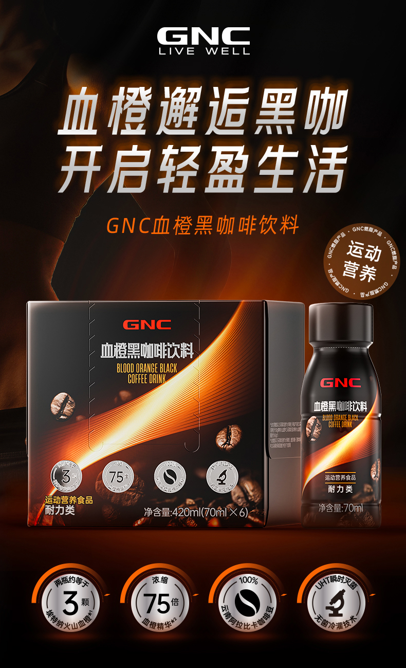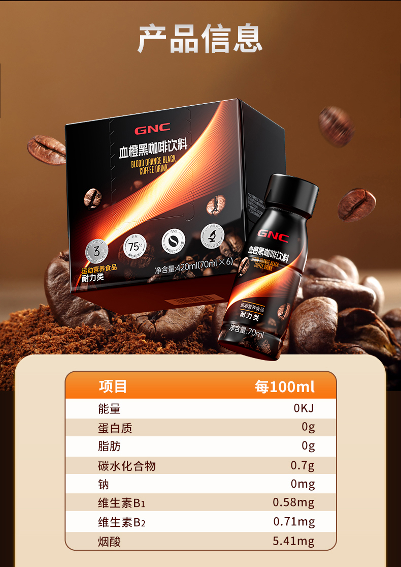 GNC/健安喜 血橙黑咖啡饮料(70ml*6)
