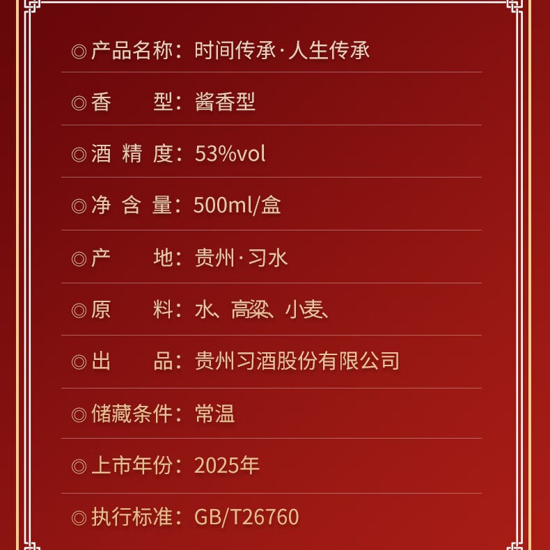 - 习酒时间传承人生传承【两瓶】
