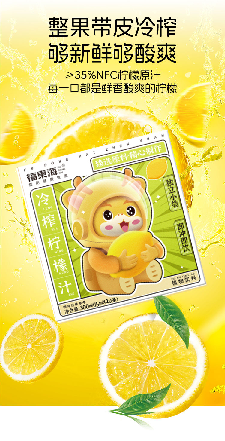 【福东海-MC】冷榨柠檬液300毫升(15毫升X20条)/盒 FDH05020273