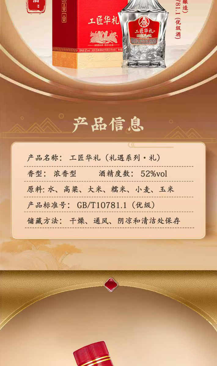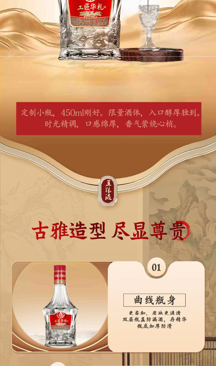 五粮液(WULIANGYE) 工匠华礼 浓香型白酒 52度 450ml*6瓶 礼盒装