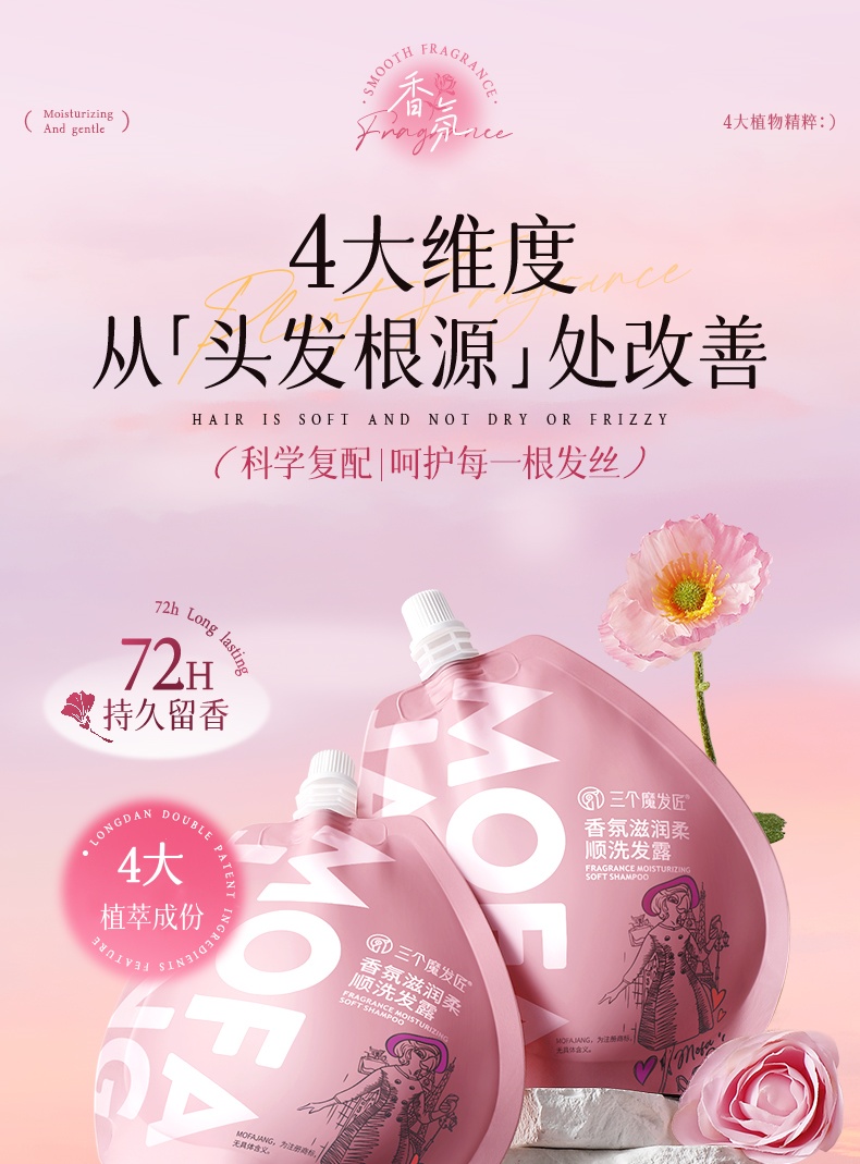 三个魔发匠 香氛滋润柔顺洗发露200ml