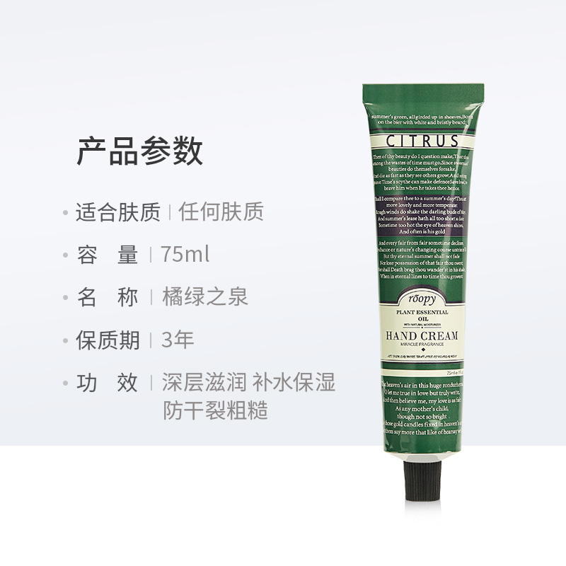 roopy润培馥奇香氛植物精粹护手霜 橘绿之泉 75ml