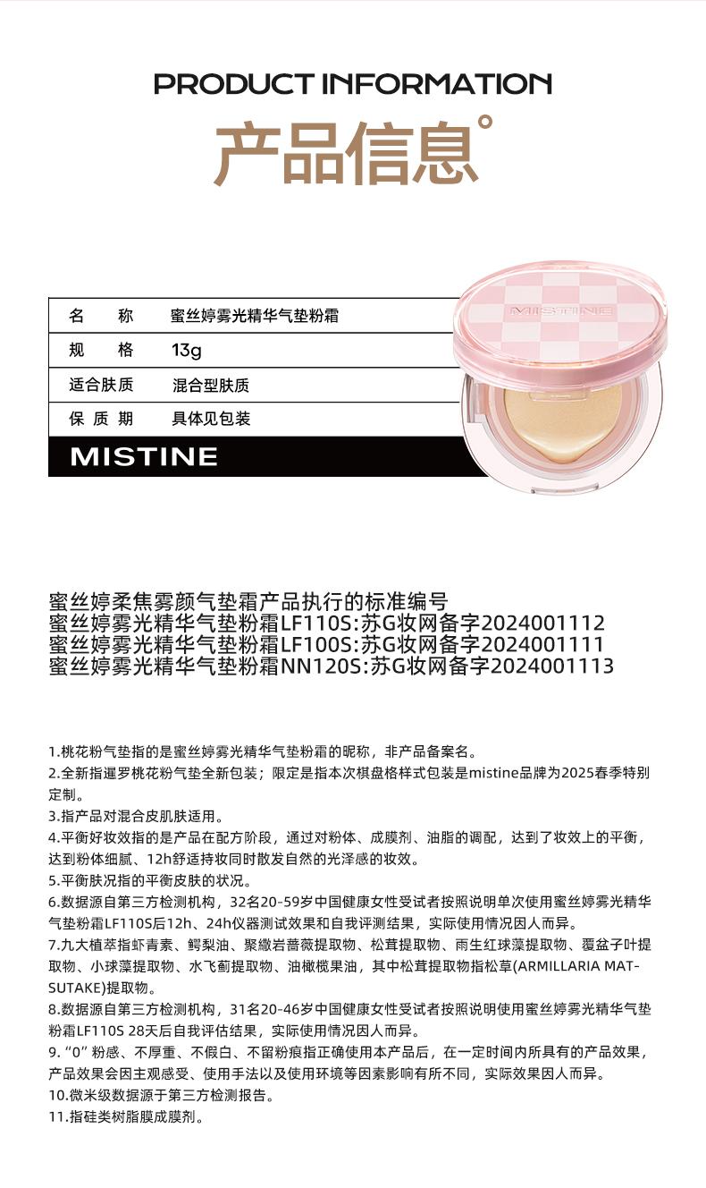 mistine蜜丝婷暹罗迷虹气垫BB霜干皮混油皮遮瑕控油【棋盘格限定—混合肤质LF100S-透亮瓷白】