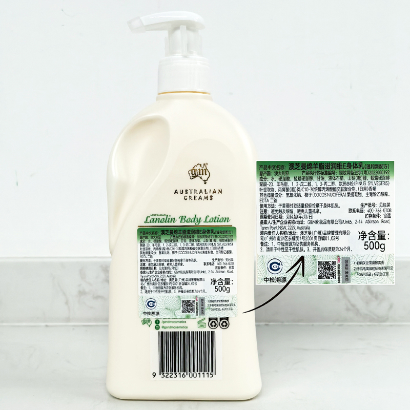 【进口中文标】【2代新款】澳洲 gm澳芝曼绵羊脂滋润维E身体乳(温和新配方)500g
