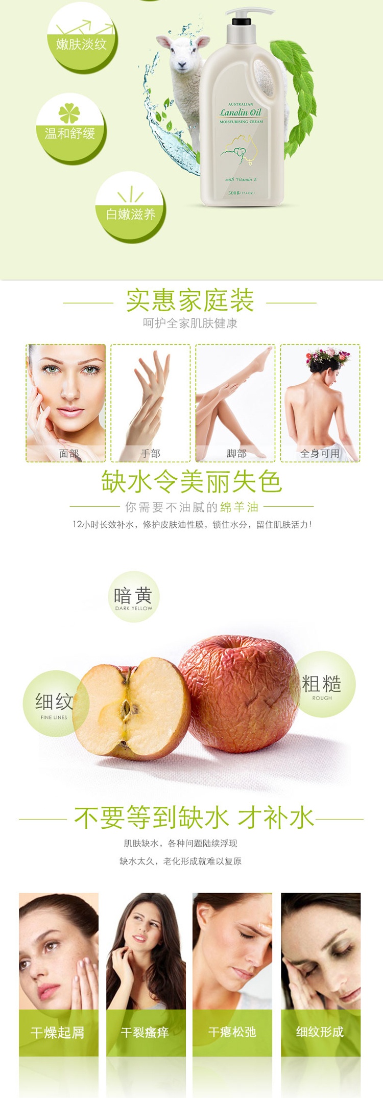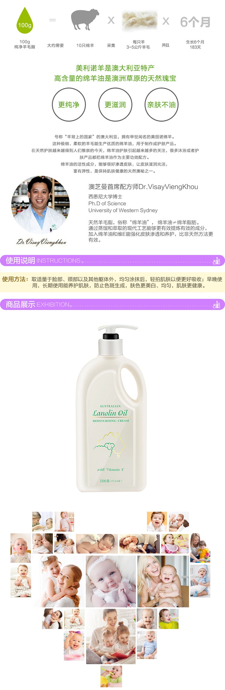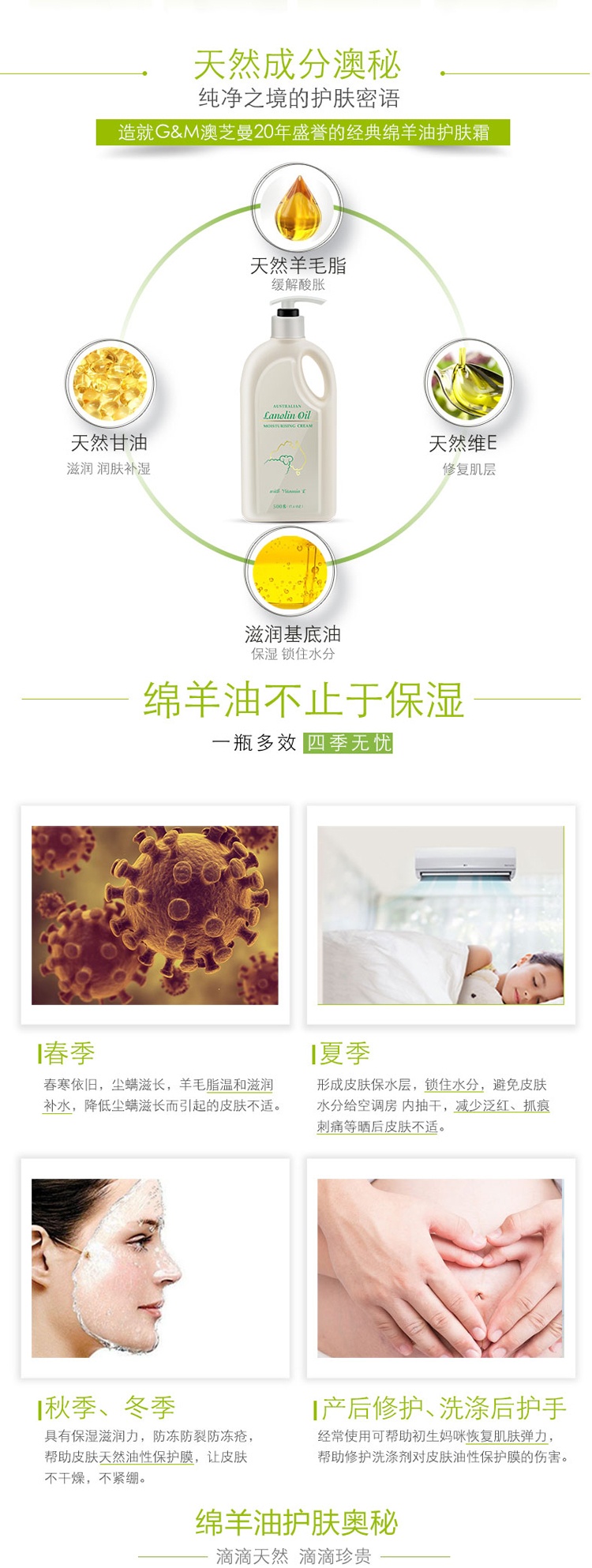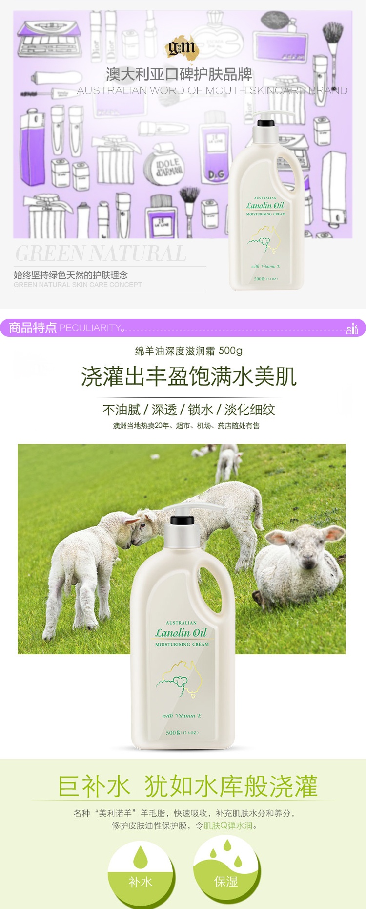澳洲GM澳芝曼绵羊油VE身体乳500g 大容量家庭装可做护手霜