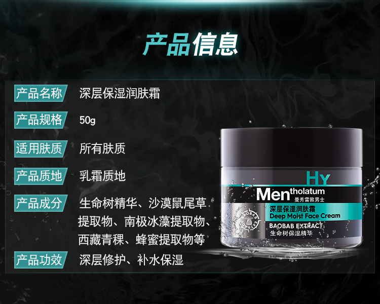 美国Mentholatum曼秀雷敦男士深层保湿润肤霜50g 效期至2026年10月