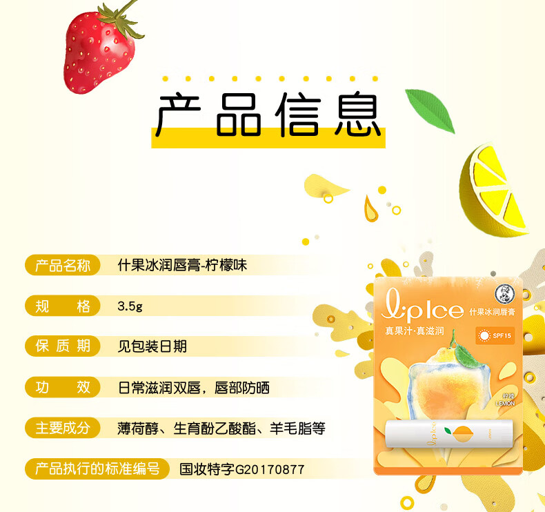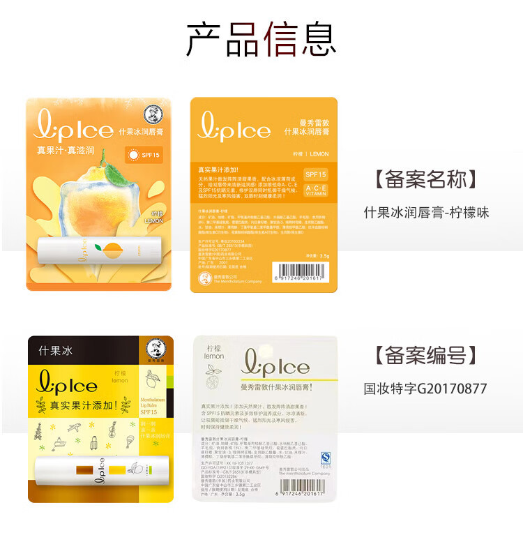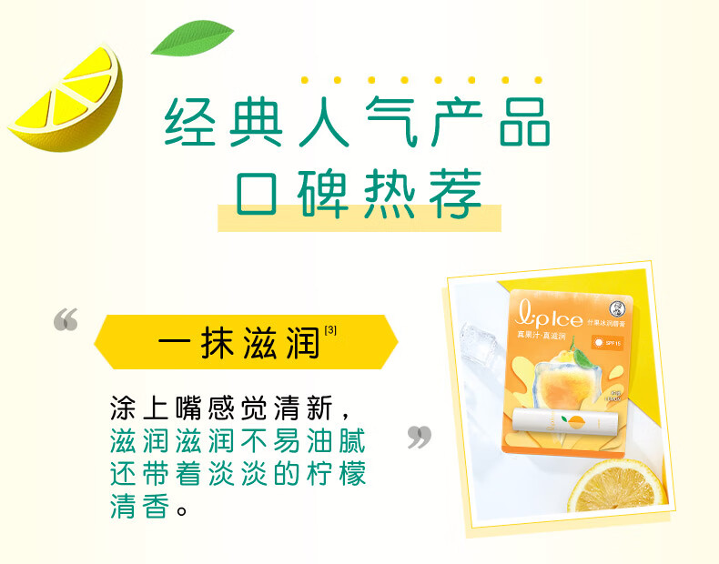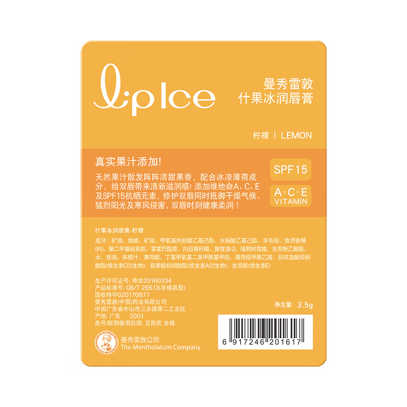 曼秀雷敦什果冰润唇膏SPF15保湿滋润补水防晒滋润防干裂-柠檬味3.5g